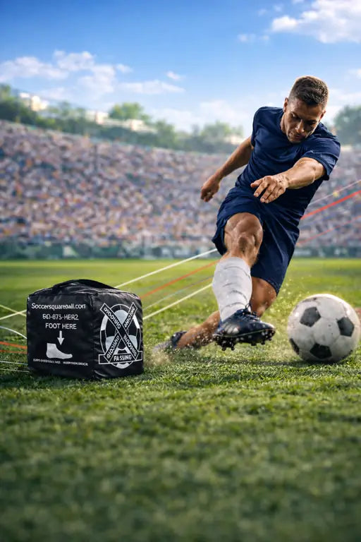 Square Ball was born because when I was coaching teaching players how to pass the ball correctly was a nightmare. A lot of ball chasing, passing, and shooting with both legs and you throw in 3 dedos(toes). Imposible! After trying all the gadgets out there with limited success and a lot of ball chasing, I thought there has got to be a better way, so I thought is there a sport that uses both left and right equally? Aha !boxing! so a brought the punching bag to the ground. Now that a patent was issued here and Europa. It is available for all soccer players.